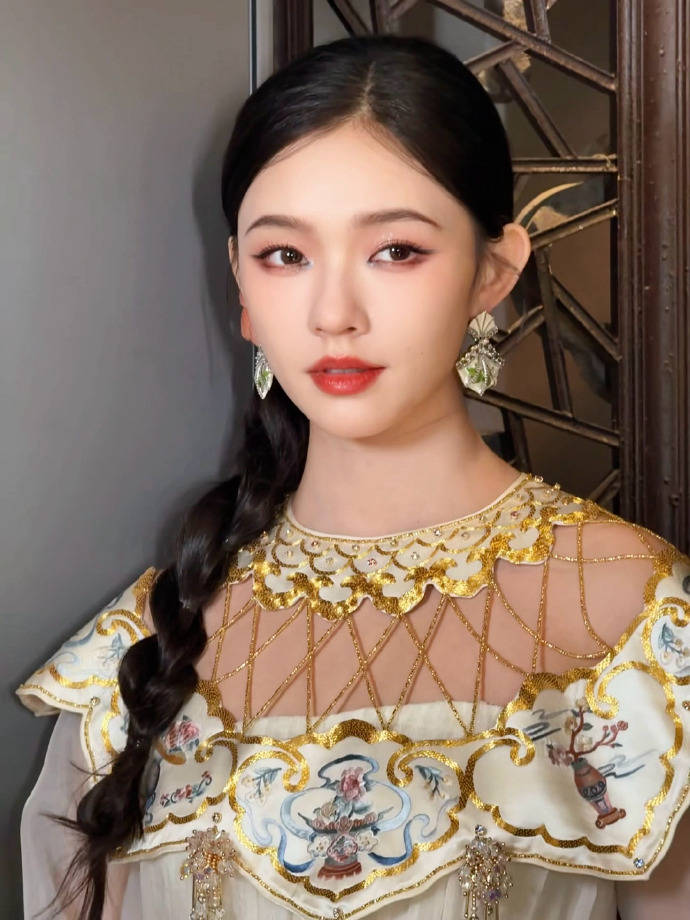 搭配麻花辫的是一抹红唇,这一经典的妆容元素瞬间提升了整体造型的气场。红唇是时尚界永不过时的标志,它能够为任何穿搭增添一抹亮色和高级感。林允的红唇选择得恰到好处,既不会过于张扬,又能很好地凸显她的气质,与麻花辫形成了一种刚柔并济的美感。